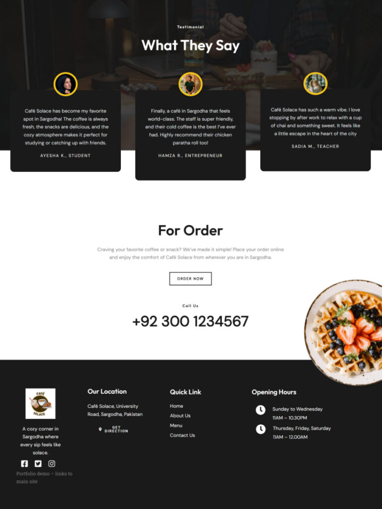 - Image gallery to present the café environment